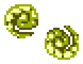 The Spiru[1][2] looks like a yellow spiral, with multiple segments. Appearing in groups, these creatures slowly spin and float around a room, only moving in 45° diagonal directions. They bounce off of solid terrain.
